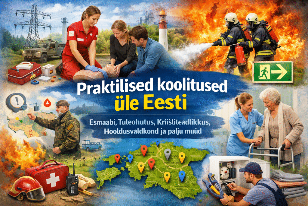 Praktilised koolitused üle Eesti – esmaabi, tuleohutus, kriisiteadlikkus, hooldusvaldkond ja palju muud.